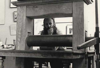 la typographie (pour l'impression de ses textes, affinant ses recherches sur ses rapports avec les mots, et donc le livre d'artiste), tout en poursuivant avec entêtement, fondamentalement ancrés au dessin, ses travaux de linogravure et surtout de monotype aveugle.