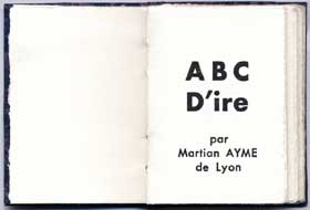 Quant à la "tradition du livre", en dehors du classicisme de sa mise en page, Martian AYME a désiré, dans un esprit de recherche et en clin d'oeil à son histoire, imprimer l'exemplaire présenté au concours (et non retenu) sur un papier ancien, déjà imprimé et, pour faire bonne mesure le relier avec des matériaux de la même époque.