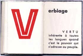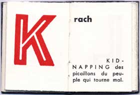 Immédiate évidence que celle d'un abécédaire minuscule avec l'initiale de chaque mot en caractère en bois occupant toute la page de gauche, imprimée en rouge, la fin du mot et le texte commençant par la même lettre (contrainte supplémentaire) en noir, sur la page de droite. L'écriture du texte, a pris plusieurs mois avant que ne puisse intervenir le processus d'impression et de reliure.